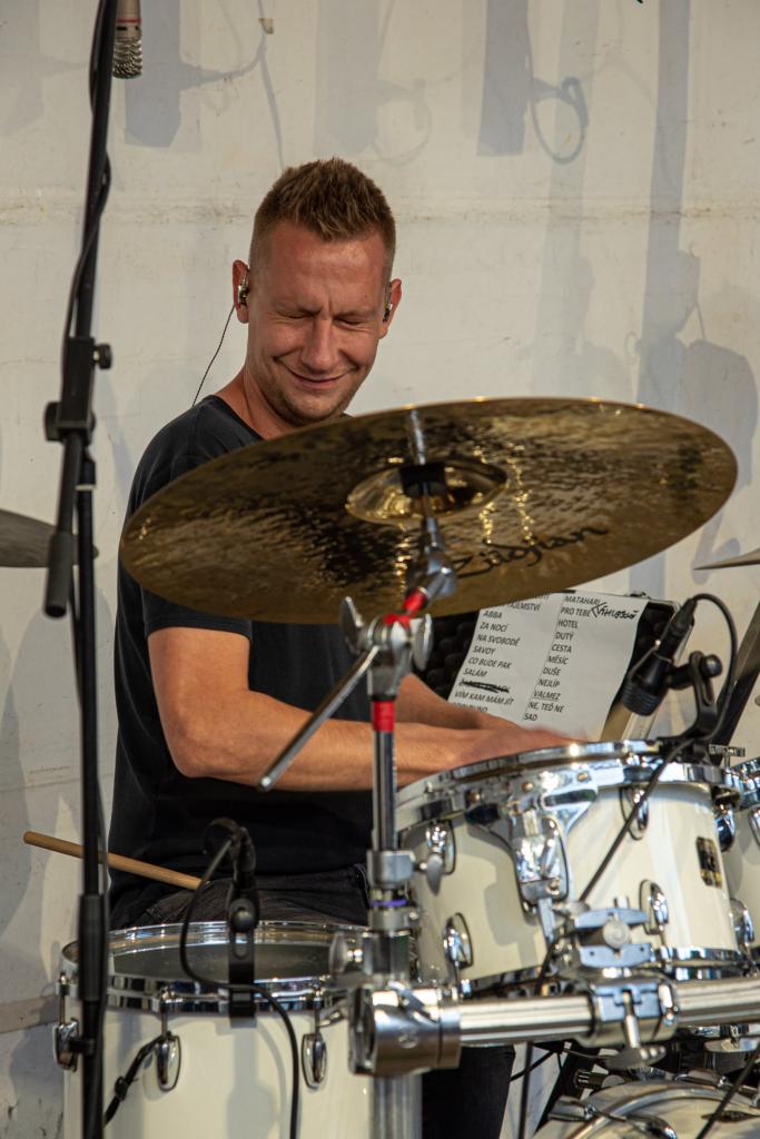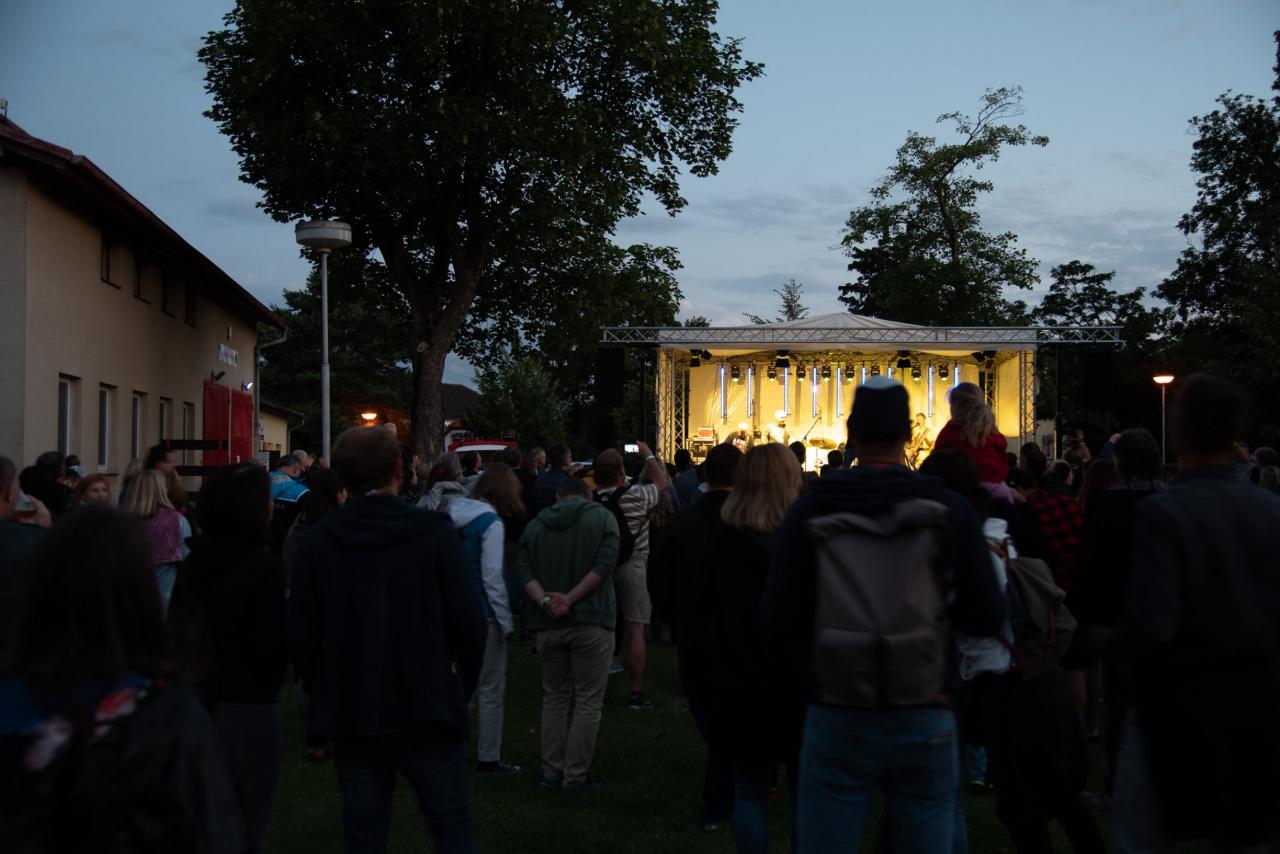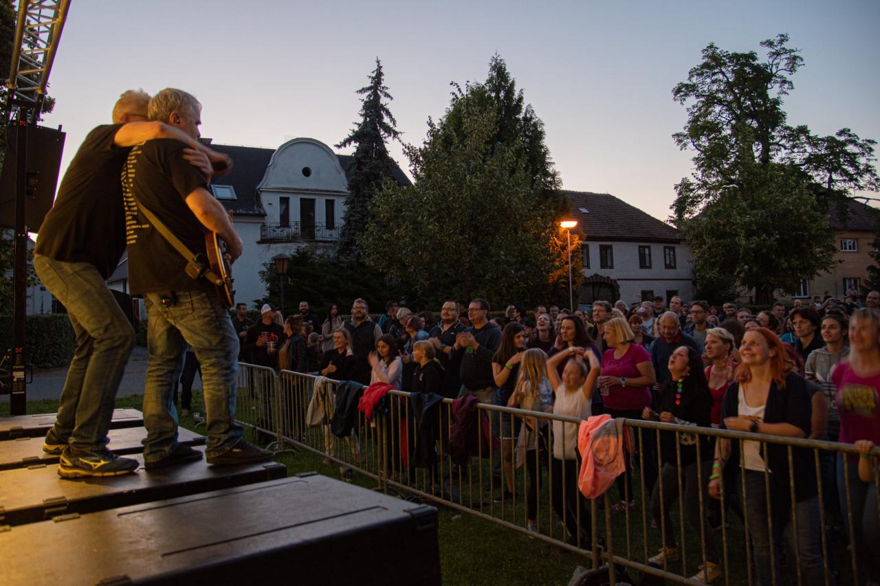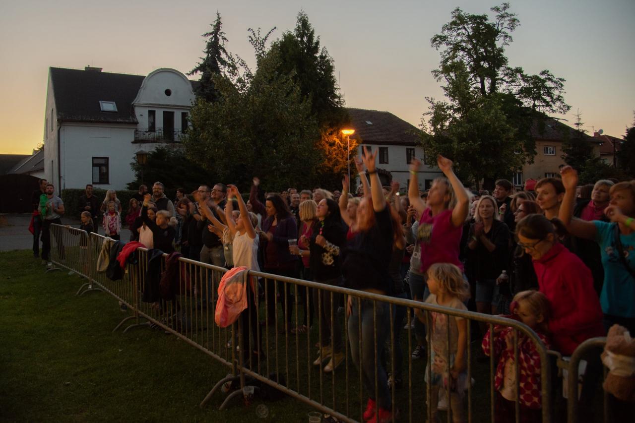 A pak nastoupila hvězda večera a dle reakcí plného náměstí, parku ve Škvorci se vystoupení moc líbilo. Přišli nejen místní sousedé, ale i fanoušci z širokého okolí. Škvorec tak opět ožil hudbou.