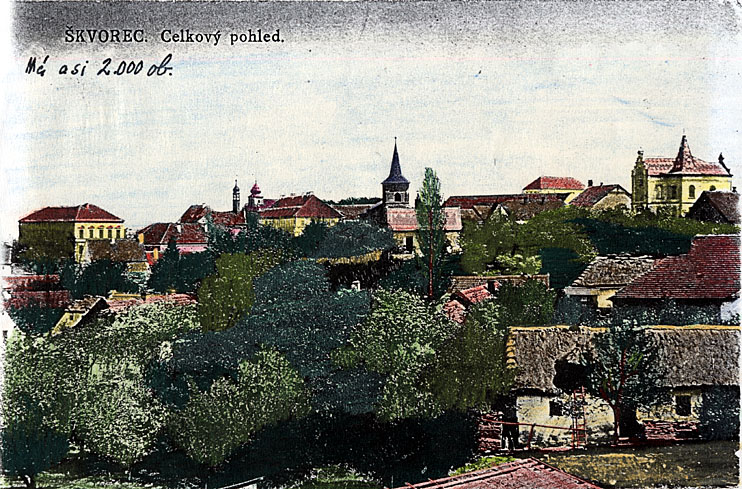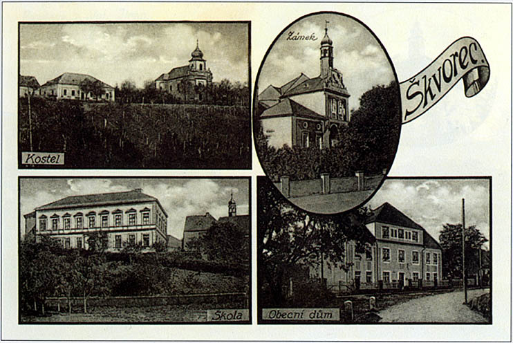 Historická pohlednice archív obce Škvorec