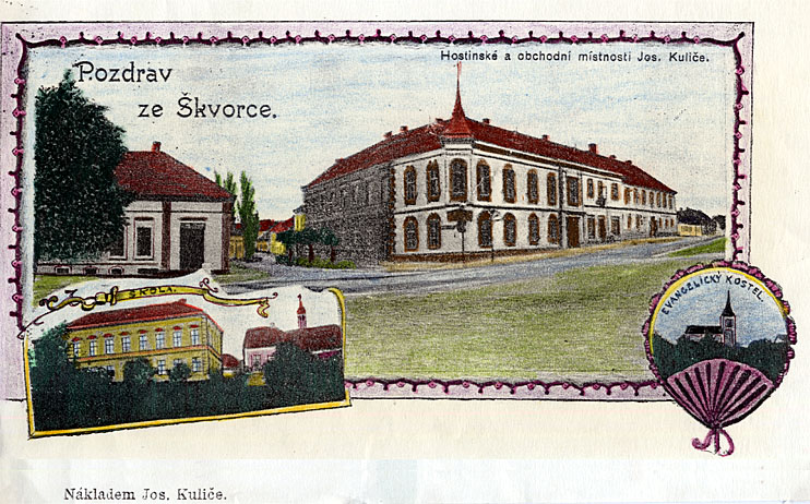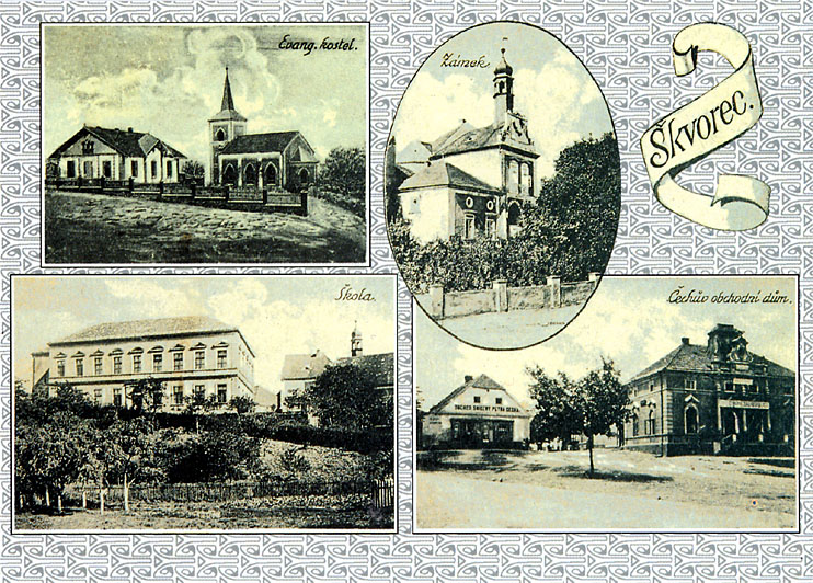 Historická pohlednice archív obce Škvorec