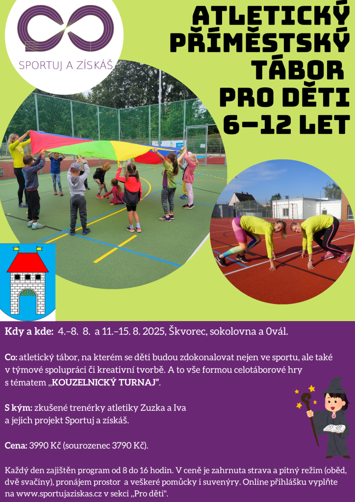 Dopoledne zasvětíme s dětmi atletickému tréninku, osvěžíme si atletickou abecedu, starty, naučíme se techniku skoku do dálky a různé vrhačské techniky, nebudou chybět ani štafety. Odpoledne budou děti rozděleny do týmů a čekat nás bude tradiční celotáborová hra, ve které se děti vydají na bojovku či se budou vyzývat na duely.