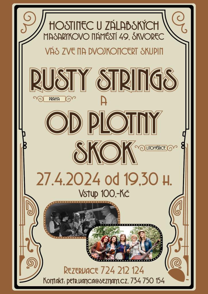 Hostinec u Zálabských vás dne 27.04.2024 zve na dvojkoncert skupin Rusty strings a Od plotny skok.